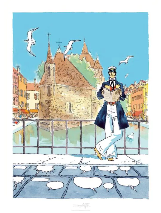 Affiche Corto Maltese par Ruben Pellejero – Sevrier BD 2016 (30×40/40×60), numérotées et signées.